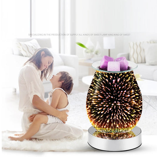 3D Fireworks Effect Touch Aromatherapy Machine Electric Wax Melter Smokeless Aroma Lamp Essential Oil Burner Aroma Accessories